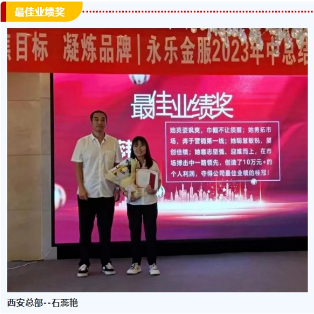 石蕊豔2020年(nián)加入永樂(yuè)金(jīn)服,之前也(y♦>→ě)已在同行(xíng)業(yè)打拼多(duō)年(nián)。π★÷憑借豐富的(de)行(xíng)業(yè)經驗,讓她≈&≤(tā)工(gōng)作(zuò)中遊刃有(yǒu)餘,盡情發π¥揮實力,業(yè)務能(néng)力超群;除了(le)此次10月(©Ω✔yuè)份銷售冠軍,她(tā)也(yě)在2023年(nián)度榮獲半年(¶₽∞✔nián)度最佳業(yè)績獎榮譽稱号。2023年(nián)8 Ω∞©月(yuè)晉升為(wèi)資金(jīn)業(yè)務部≤部門(mén)副經理(lǐ)。她(tā)一(yī)心向前沖,堅持秉持著×ε∑(zhe)“以客戶需求為(wèi)核心、服務至上(shàng)”↑✔≤的(de)原則和(hé)信念不(bù)斷前進。