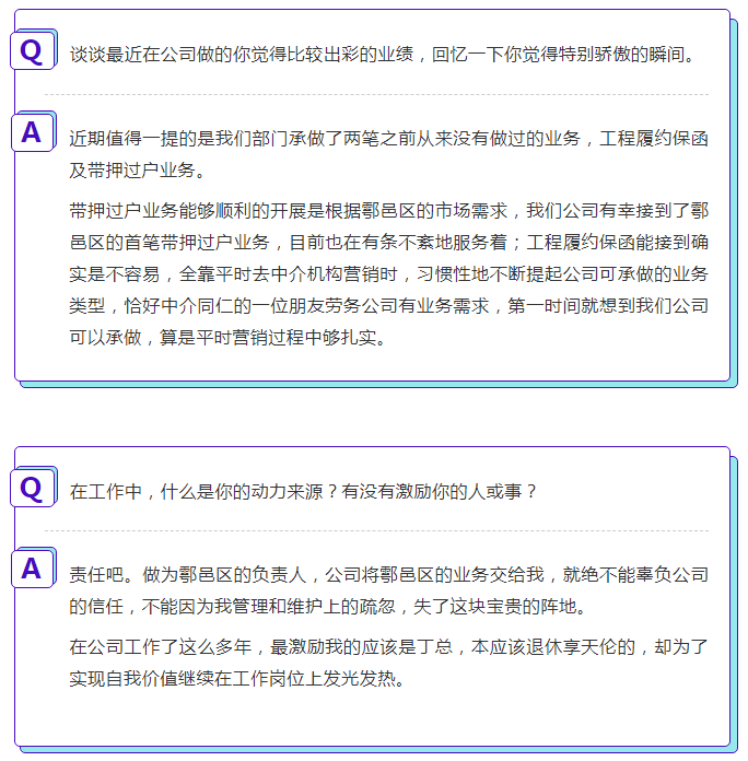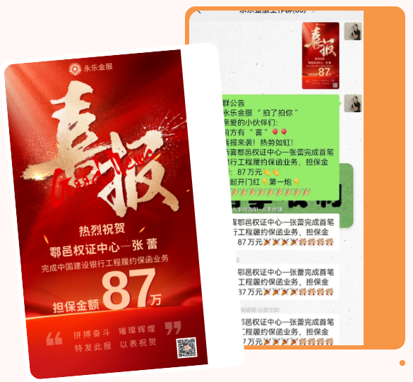 因區(qū)域市(shì)場(chǎng)差異,鄠邑區(qū)權證中心面臨的(εβ&de)機(jī)遇與挑戰也(yě)十分(fēn)不(bù↑β)同。張蕾根據當地(dì)市(shì)場(chǎng)特點,善用(yòng)&≤♦↕自(zì)身(shēn)業(yè)務優勢,打破了(le)固有(yǒu)營銷模式與思想桎梏,創新♣€↓ 業(yè)務品類,通(tōng)過指導和(hé)自(zì)身(shē↕£$©n)的(de)學習(xí)摸索,成功開(kāi)拓完成了(le)鄠邑ε©α↔區(qū)首筆(bǐ)工(gōng)程履約保函業(yè)務,在春&±&節收假的(de)第一(yī)天打響了(le)“開(kāi)門(₽∏®mén)紅(hóng)”第一(yī)炮,極大(dà)地(dì)鼓舞(wǔ∑¶)了(le)士氣。