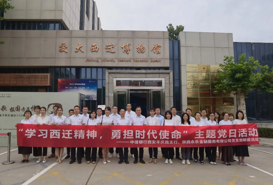中信銀(yín)行(xíng)西(xī)安豐慶 路(lù)支行(xíng)、永樂(yuè)金(jīn)服黨支部聯建 ≤♥ | 赴交大(dà)西(xī)遷博物(wù)館開(kāi)展“學習•∑•∑(xí)西(xī)遷精神,汲取奮進力量”主題黨日(rì♥•Ω)活動