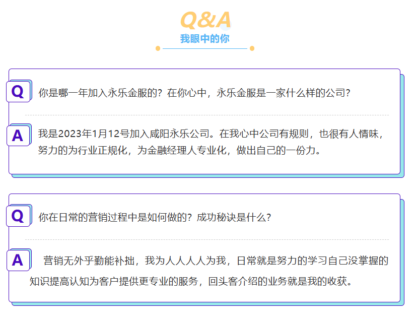 在營銷一(yī)線的(de)崗位上(shà®>←ng),王樂(yuè)思默默地(dì)奉獻著(↑∞÷zhe)自(zì)己的(de)青春和(hé)•♦↔力量,他(tā)所做(zuò)的(de)一(yī)切都(dōu)是(™shì)為(wèi)了(le)不(bù)負心中的(de)那(>↑©nà)份熱(rè)愛(ài)。他(tā)期望通(tōng)過自(→zì)己的(de)努力工(gōng)作(zu∞₹ò)不(bù)斷成長(cháng),能(néng)夠早日(rì)獨擋一(yī♠←λ)面,為(wèi)永樂(yuè)金(jīn)服楊淩權證β↓₹™中心事(shì)業(yè)添磚加瓦。