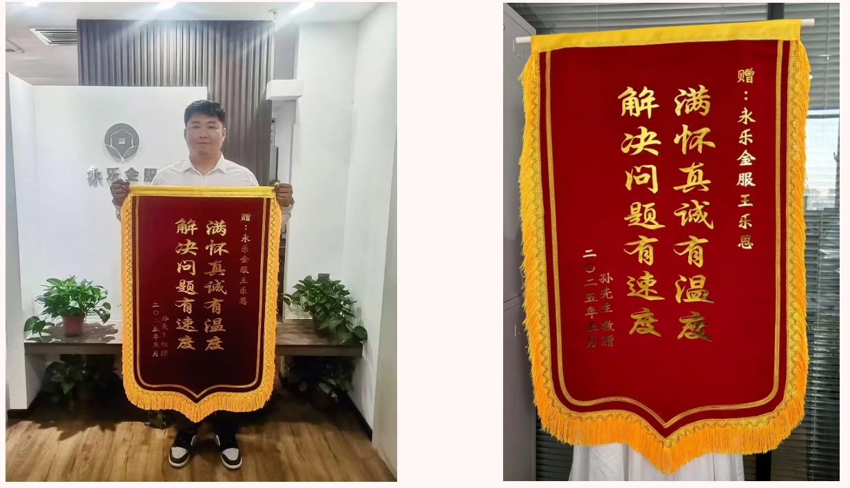 客戶的(de)滿意是(shì)我們最大(d>'¥à)的(de)追求。這(zhè)面錦旗将時(shí)刻提醒我們:不(bù)忘 →初心,繼續以真誠和(hé)專業(yè)赢得(de)更多(duō)客戶的÷∑☆(de)信賴。未來(lái),永樂(yuè)金(jīn)服将不(bù)斷提升服務質量,用(yòng)行(xíng)動诠釋"客戶至上(shàng)"的(de)服務宗旨。