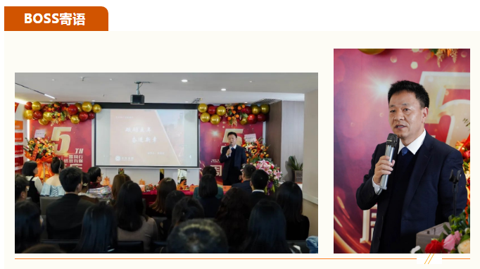 慶典上(shàng),董事(shì)長(cháng)張伍民(mínΩ€)先生(shēng)發表了(le)熱(rè)情洋溢的(de)←✘¶£賀詞。他(tā)分(fēn)享了(le)創業(yè)五年(nián∞ε)來(lái)的(de)心路(lù)曆程 ββ,充分(fēn)肯定了(le)公司取得(de)的(d☆λe)喜人(rén)成績,感恩這(zhè)一(yī)路(lù)上(shàng)客§♣®≈戶與合作(zuò)夥伴給予的(de)信任✘φ↕Ω與支持,并滿懷激情地(dì)展望未來(lái)發展前景。✔β♥≈