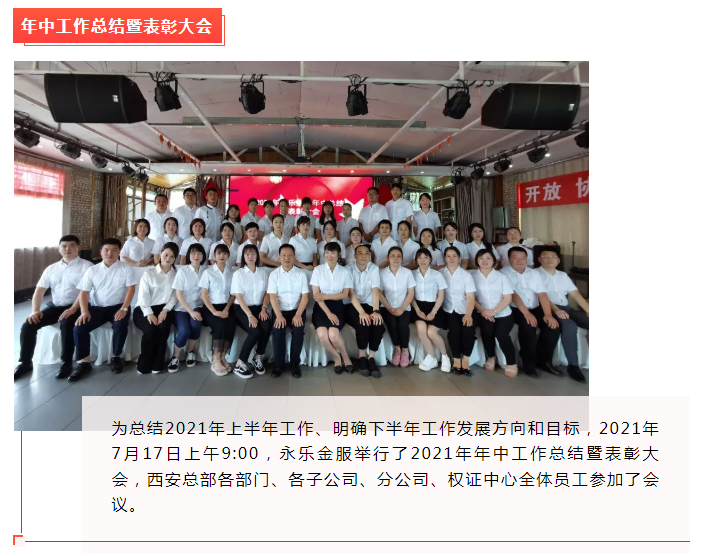 永樂(yuè)金(jīn)服2021年(nián)✔∞↓★年(nián)中工(gōng)作(zuò)總結暨表彰大(d<à)會(huì)圓滿落幕