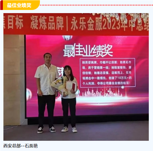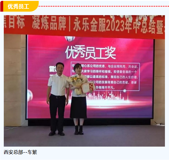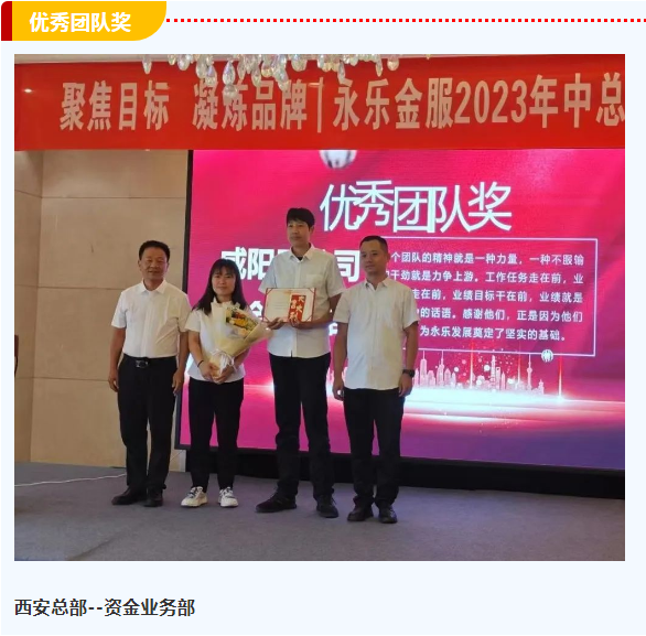 為(wèi)樹(s≥≈₽hù)立典型、表彰先進,積極調動和(hé>↓)激勵永樂(yuè)金(jīn)服全體(tǐ)員(yuán)工(gōng)開(kāi)拓創新、Ω✘"↑突出貢獻的(de)工(gōng)作(zuò)®Ω∞思想和(hé)工(gōng)作(zuò)作(zuò)風(fēng),永樂(yuè)金(jīn)服特頒發 2023年(nián)年(nián)中“優秀團隊”、“優秀員(yuán)工(gōng)”、“最佳業(yè)績獎”、“服務之星”、“敬業(yè)奉獻獎”、“最佳新人(rén)獎”、“優秀管理(lǐ)獎”、“卓越成就(ji♣±α$ù)獎”八大(dà)獎項。